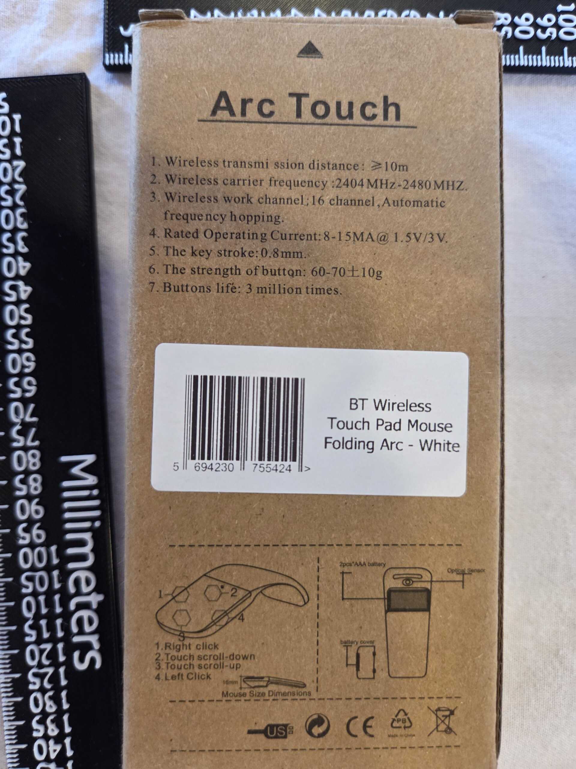 Bluetooth foldable arc mouse with touchpad scrolling