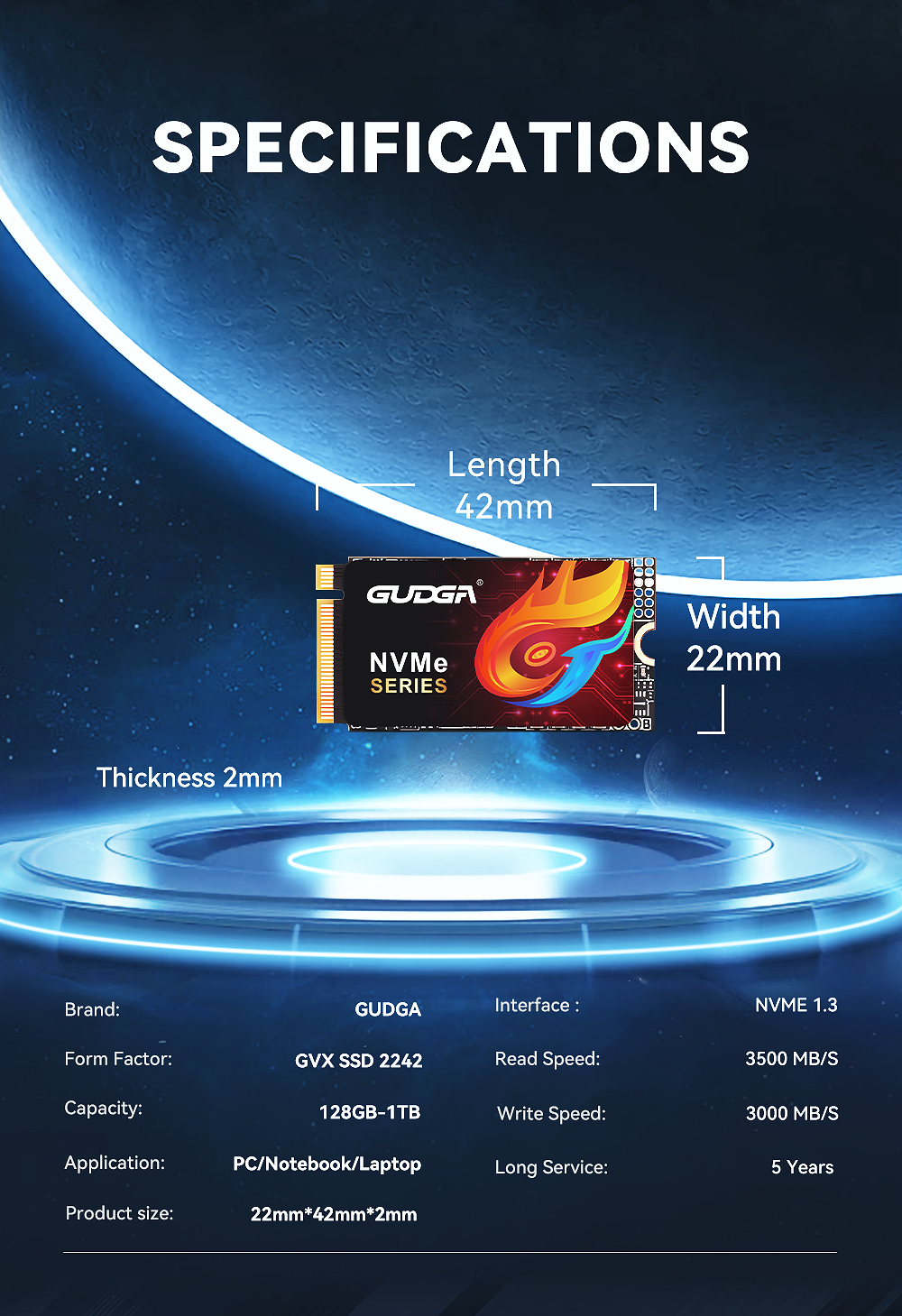Whether upgrading a laptop or building a custom embedded solution, the GUDGA M.2 NVMe 2242 SSD offers the perfect balance of speed, size, and reliability.