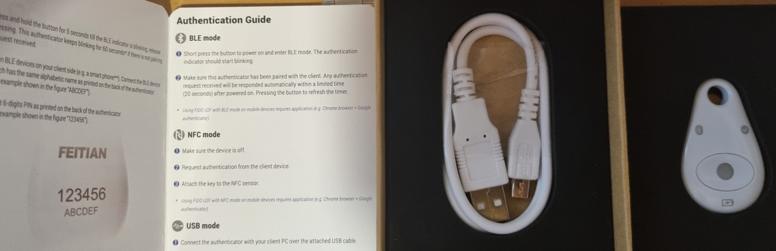 - Three interfaces: USB, NFC, and BLE